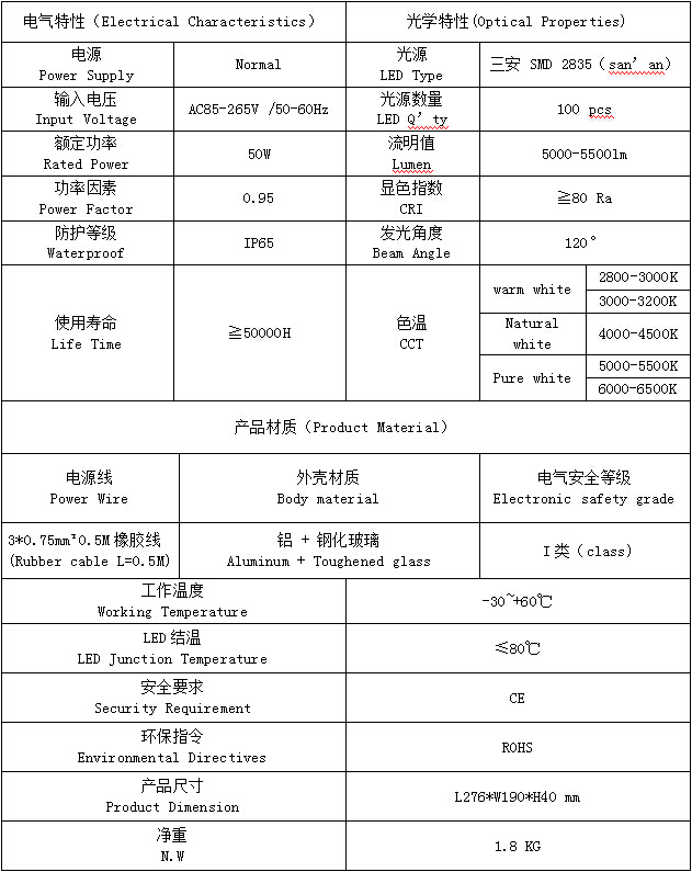 PF73L-50W產品特點(Product features): 1.配合恒流率電源,顯色效果和亮度更出色; 2.了鋁基板面積,可以快速將熱量傳給殼體,增加了燈具的導熱效果 3.蓋咬合設計有效防止側邊漏光; 4.等級IP65 PF73L-50W產品規格(Product Spec):